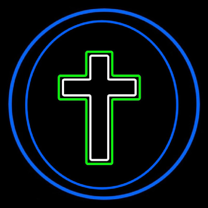 Christian Cross Blue Border Neon Sign